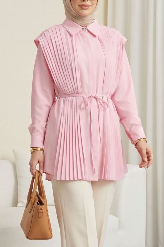 Robadan Büzgülü Beli Bağcıklı Gömlek Pembe