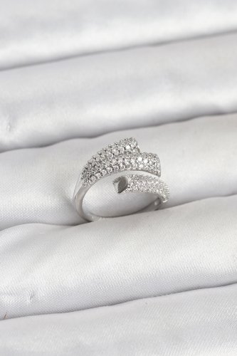 Gümüş Renk Zirkon Taşlı Pirinç Kadın Yüzük