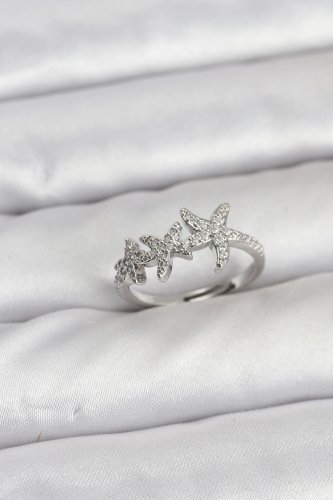 Gümüş Renk Pirinç Yıldız Model Kadın Yüzük