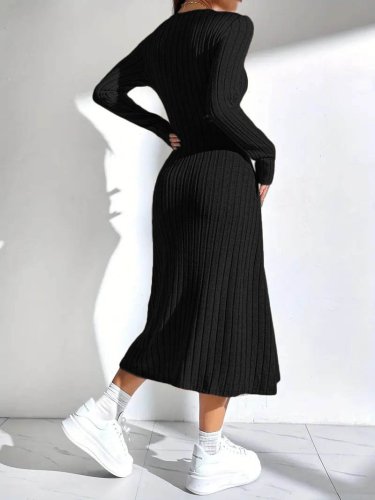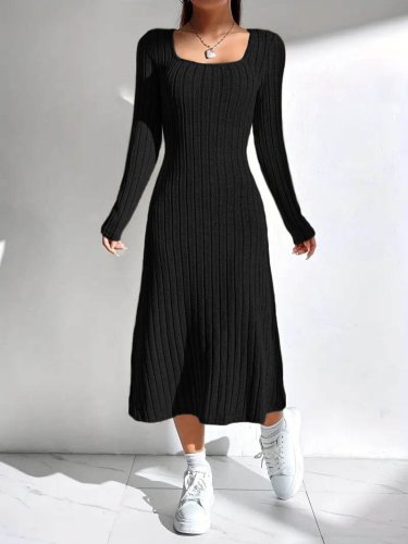 • Kadın uzun kollu kare yakalı midi şardonlu kaşkorse elbise