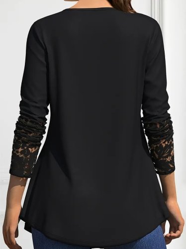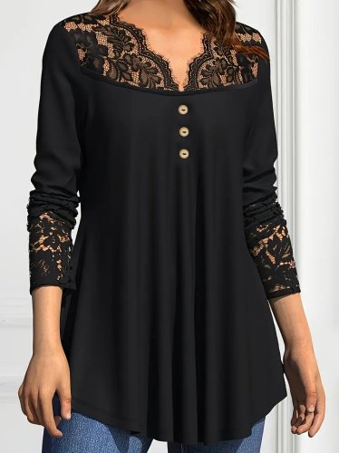 • Kadın uzun kollu dantel detaylı düğmeli viskon bluz