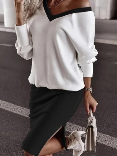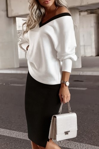 • Kadın uzun kollu v yakalı viskon iki iplik bluz ve mini etek ikili takım