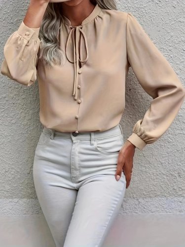 • Kadın uzun kollu yakalı yakadan bağcıklı düğmeli sandy bluz