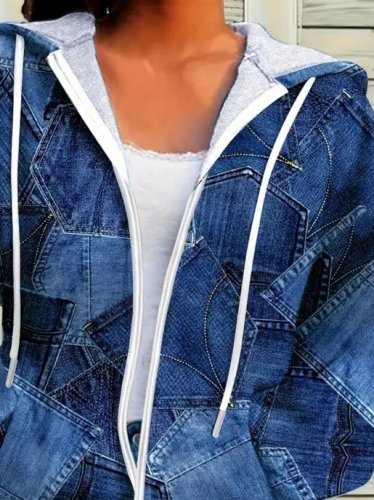 Kadın uzun kollu kapşonlu fermuarlı kot desenli bağcıklı modal ceket