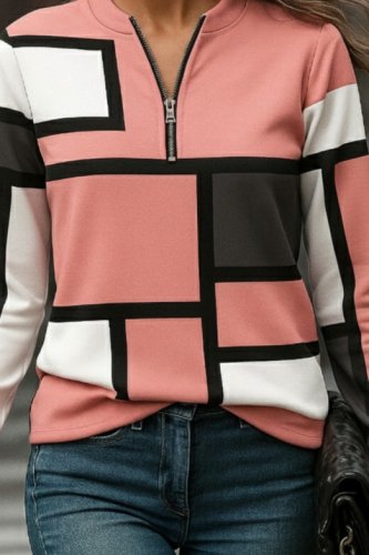 • Kadın uzun kollu yakadan fermuarlı desenli şardonlu dalgıç bluz