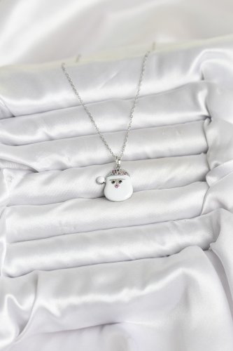 • 316L Çelik Zincir Gümüş Renk Şapkalı Kardan Adam Kafası Model Yılbaşı Temalı Kadın Kolye