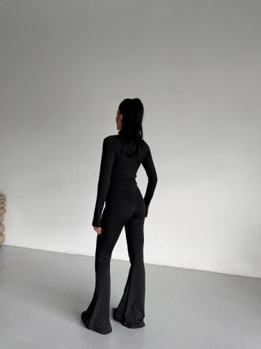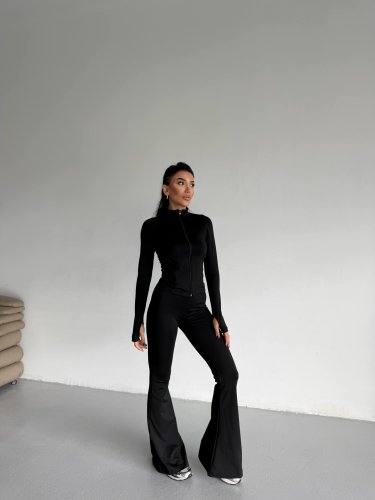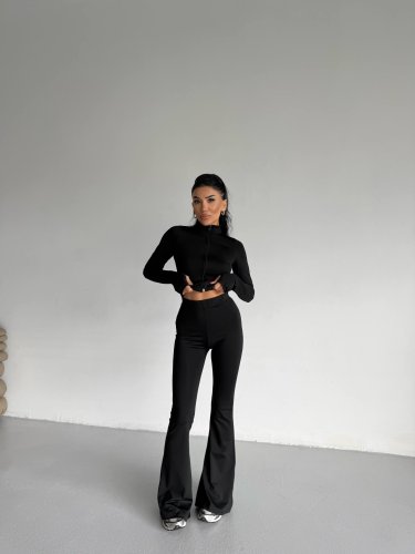 Kadın balıkçı yaka cep detaylı ceket ve ispanyol paça spor ikili takım