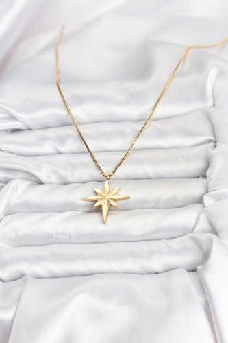 • 316L Çelik Zincir Gold Renk Kutup Yıldızı Model 60 cm Zincir Kadın Kolye