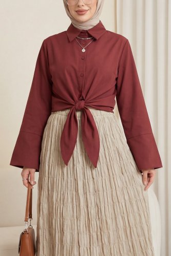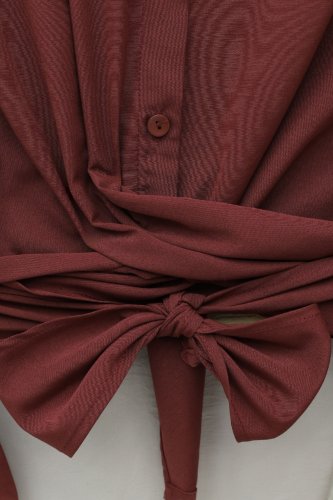 • Beli Bağlamalı İspanyol Kol Poplin Gömlek Bluz Bordo