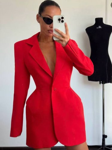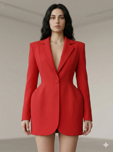 • Kadın atlasdokuma kumaş ceket elbise